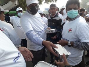 भोजन के पैकेट बांटे।
