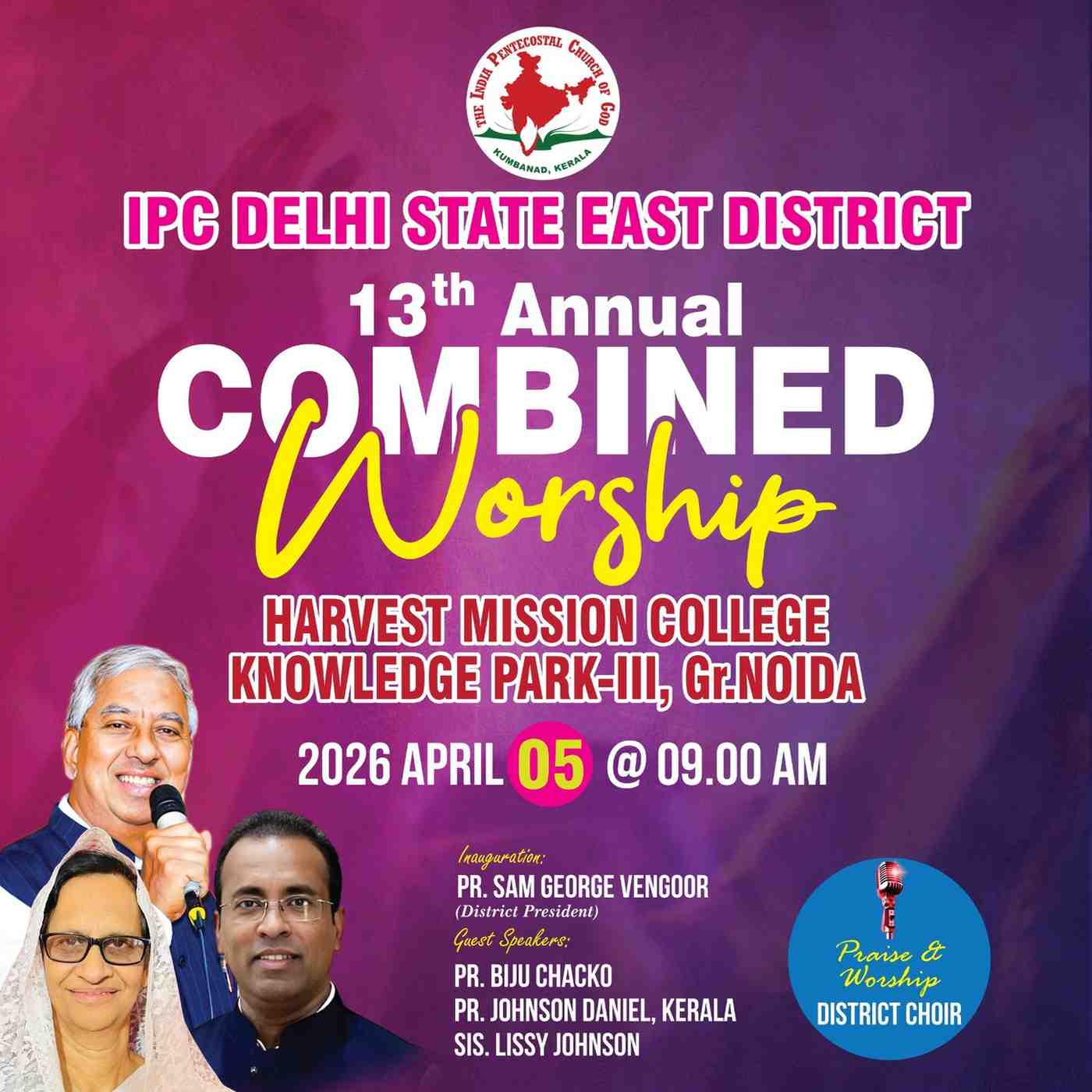 आईपीसी दिल्ली स्टेट ईस्ट डिस्ट्रिक्ट कन्वेंशन एवं संयुक्त आराधना 3, 4 और 5 अप्रैल 2026.