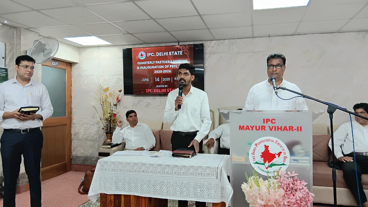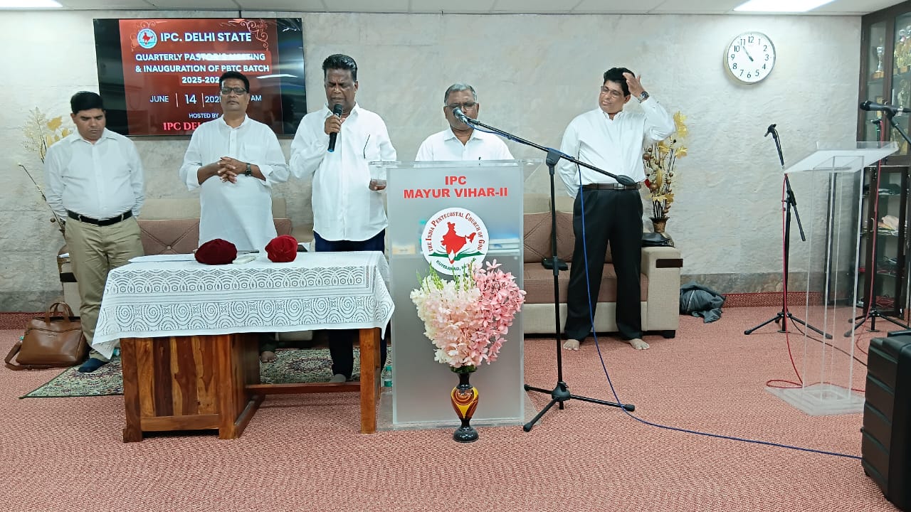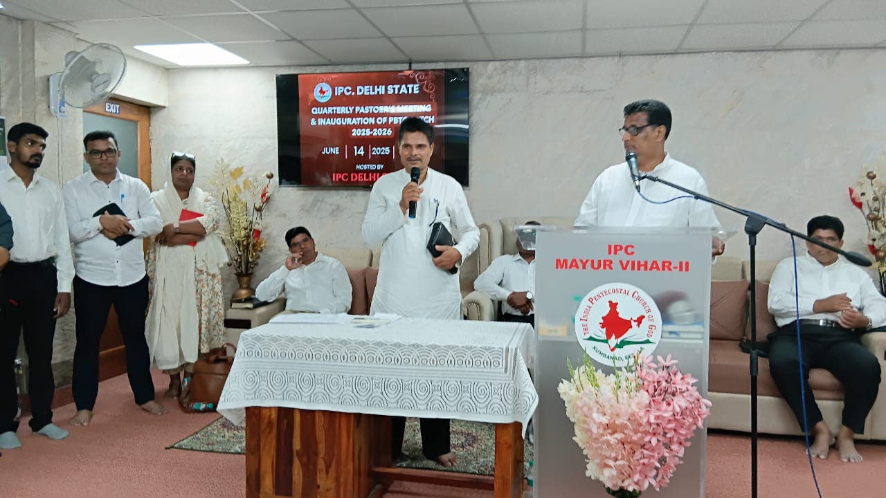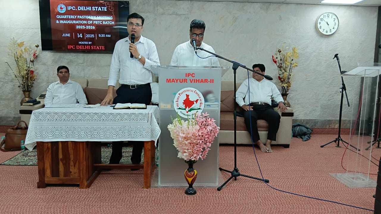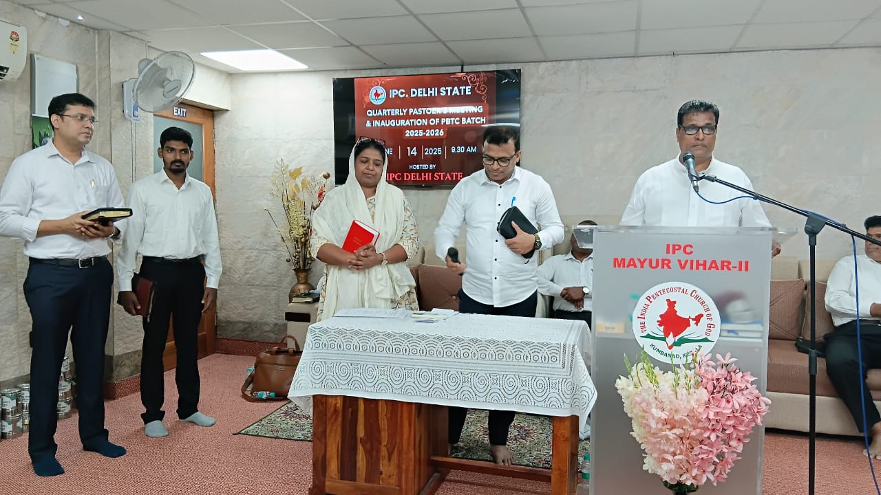 आईपीसी दिल्ली राज्य त्रैमासिक पादरियों की बैठक और पेनियल बाइबल प्रशिक्षण केंद्र 2025-2026 शैक्षणिक वर्ष का उद्घाटन 14 जून 2025 को सुबह 9.30 बजे आईपीसी मयूर विहार फेज 2 चर्च में हुआ। आईपीसी दिल्ली उत्तर जिला अध्यक्ष पादरी सी. जॉन ने बैठक में अध्यक्षता की। पादरी ए. के. रेजी (पश्चिम जिला अध्यक्ष) ने भजन पढ़ा और उपदेश दिया। पादरी सैम करुवत्ता ने धन्य आराधना का नेतृत्व किया। पादरी टी. के. सैम, संतोष टी. सी., जोसेफ जॉय और दीपक एडवर्ड ने प्रार्थना की।
