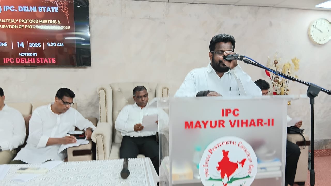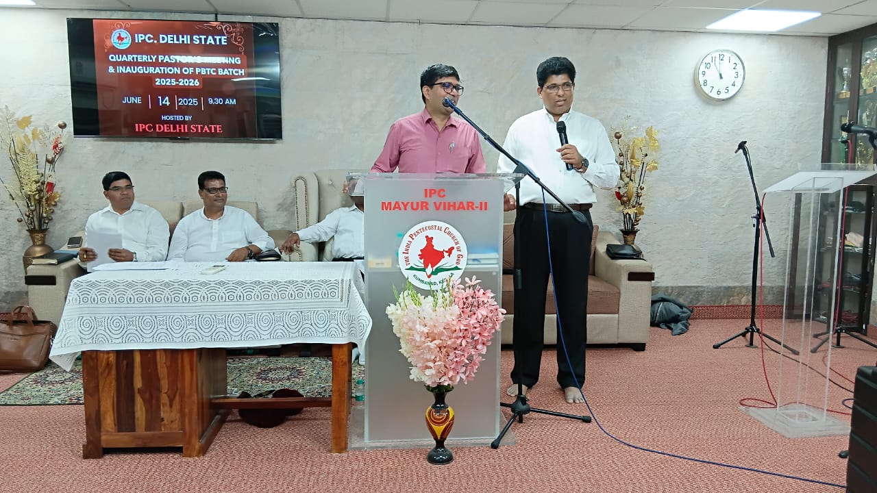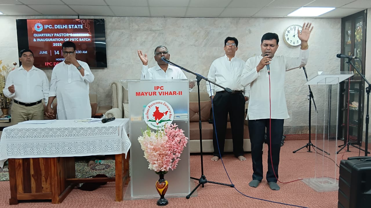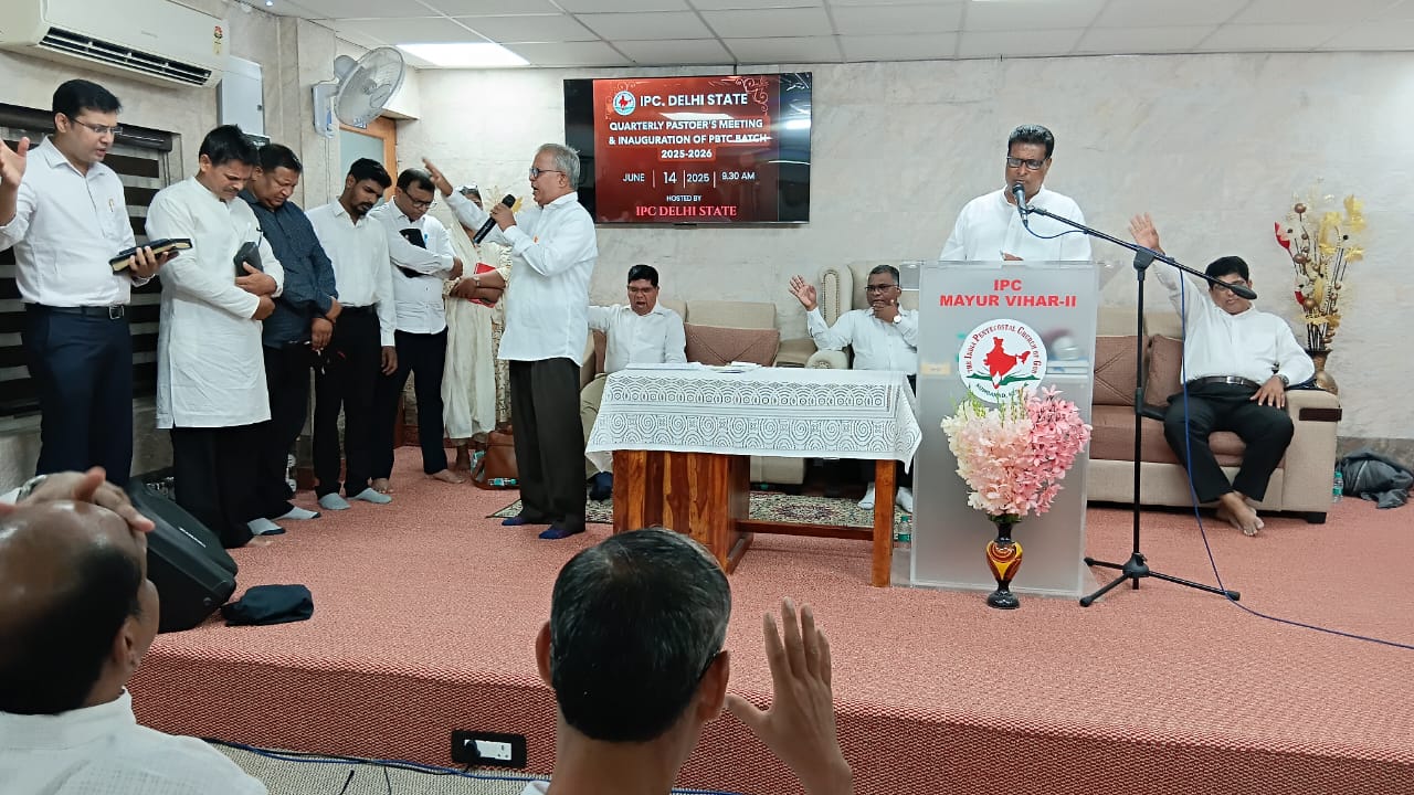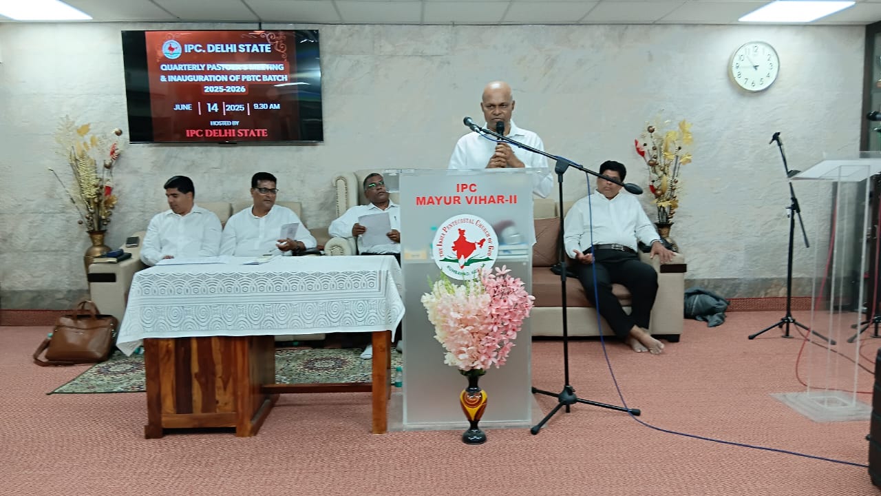 आईपीसी दिल्ली राज्य त्रैमासिक पादरियों की बैठक और पेनियल बाइबल प्रशिक्षण केंद्र 2025-2026 शैक्षणिक वर्ष का उद्घाटन 14 जून 2025 को सुबह 9.30 बजे आईपीसी मयूर विहार फेज 2 चर्च में हुआ। आईपीसी दिल्ली उत्तर जिला अध्यक्ष पादरी सी. जॉन ने बैठक में अध्यक्षता की। पादरी ए. के. रेजी (पश्चिम जिला अध्यक्ष) ने भजन पढ़ा और उपदेश दिया। पादरी सैम करुवत्ता ने धन्य आराधना का नेतृत्व किया। पादरी टी. के. सैम, संतोष टी. सी., जोसेफ जॉय और दीपक एडवर्ड ने प्रार्थना की।