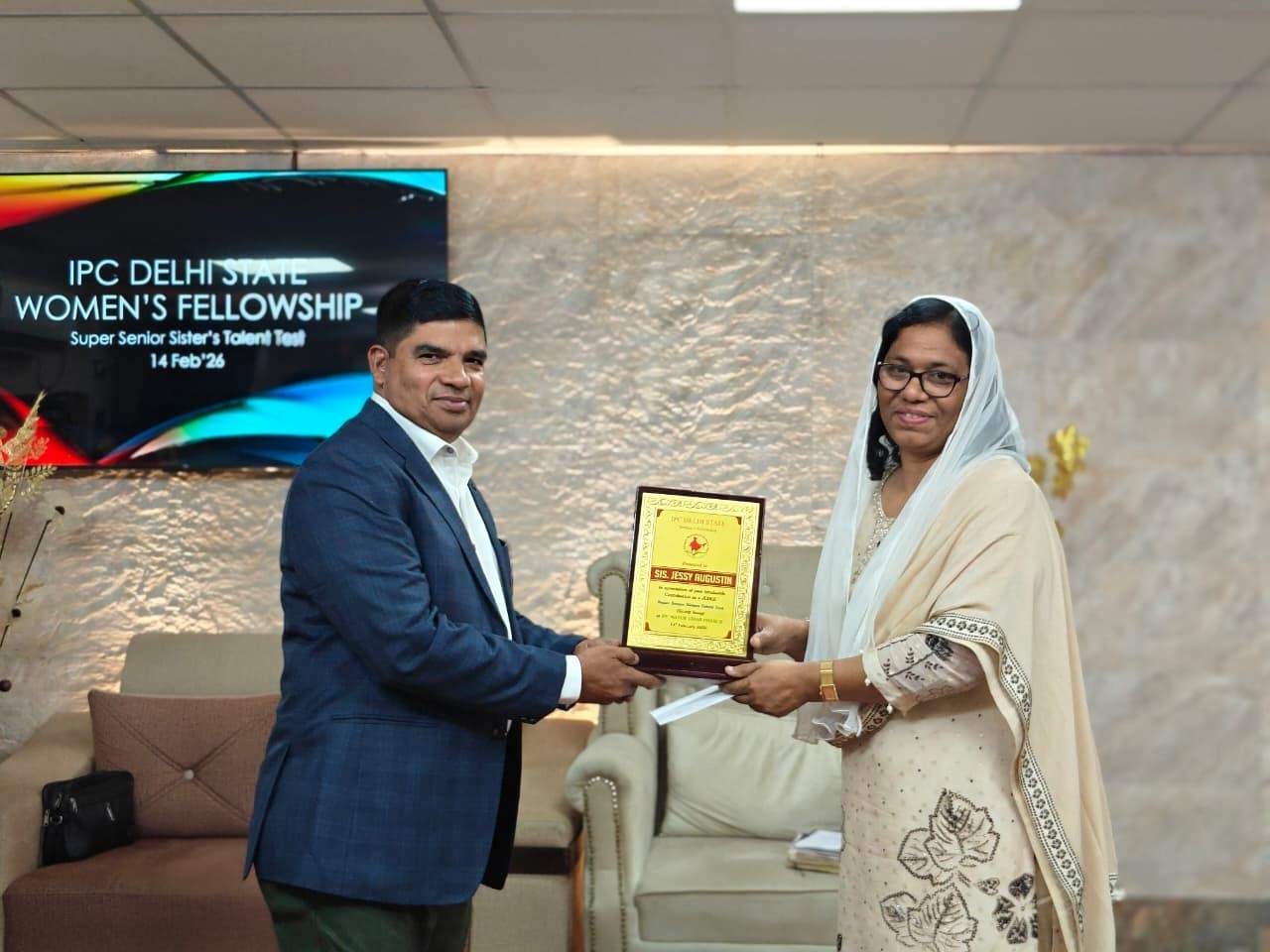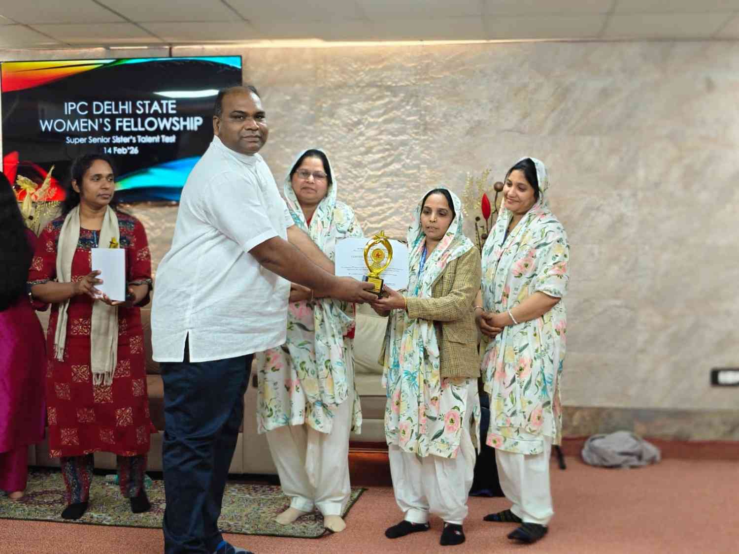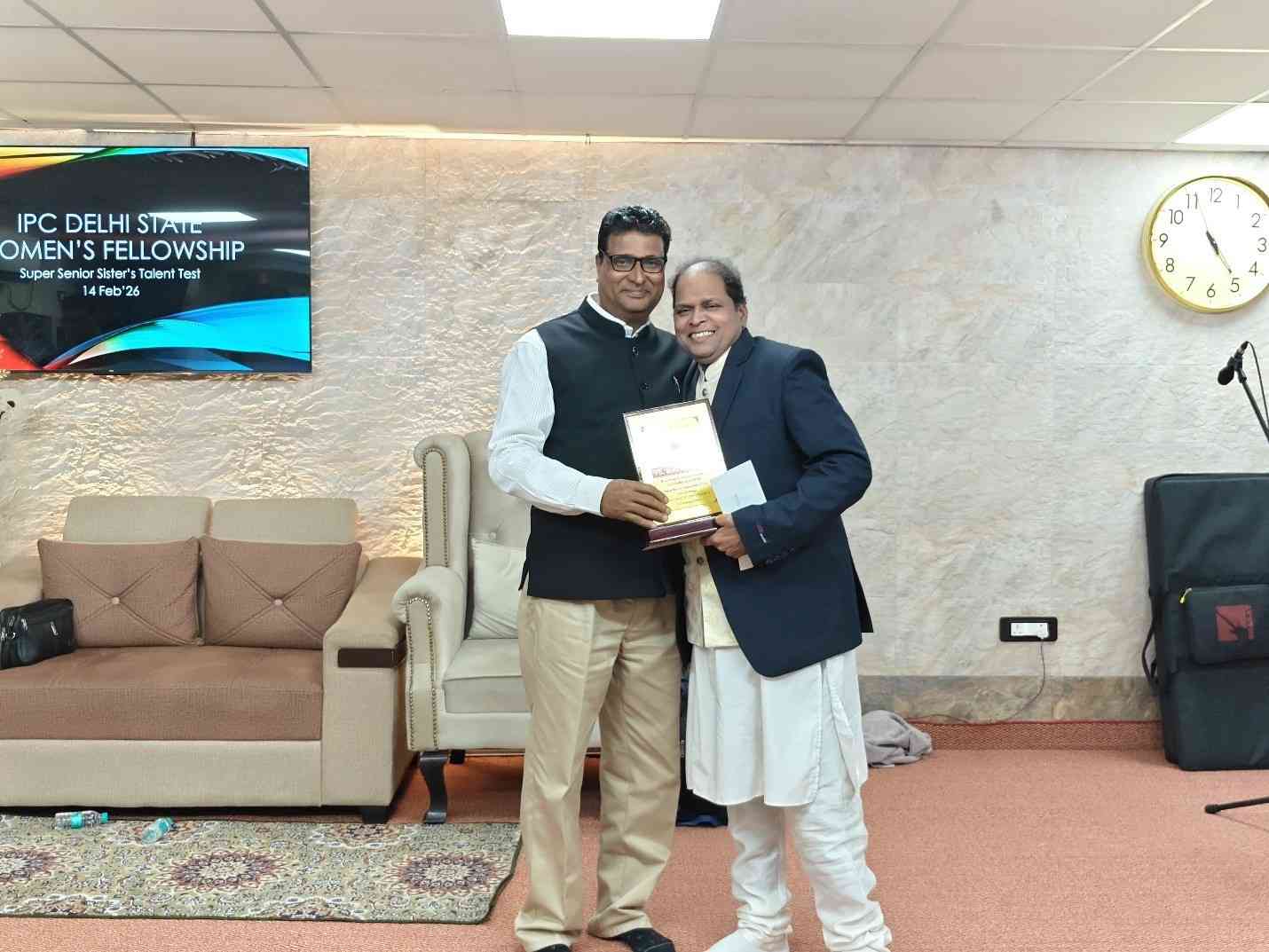IPC Delhi State Women’s Fellowship ന്റെ നേതൃത്വത്തില് 2026 ഫെബ്രുവരി 14-ന് 2.30 pm മുതല് IPC Mayur Vihar Phase II സഭയില് വച്ച് “സൂപ്പർ സീനിയർ സിസ്റ്റേഴ്സ് ടാലന്റ് ടെസ്റ്റ് – ഗ്രൂപ്പ് സോംഗ്” വിജയകരമായി സംഘടിപ്പിച്ചു. സൗത്ത് ഡിസ്ട്രിക്ട് വൈസ് പ്രസിഡന്റായ പാസ്റ്റര്. സാം തോമസ് അധ്യക്ഷത വഹിച്ചു. അധ്യക്ഷന്റെ പ്രാർത്ഥനയോടെ യോഗം ആരംഭിച്ചു. പാസ്റ്റര് . ബിജു പടവത്ത് ആത്മനിറവിലുള്ള ആരധന നയിച്ചു.