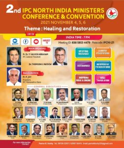ഐ.പി.സി. നോർത്ത് ഇന്ത്യ 2nd മിനിസ്റ്റേഴ്സ് കോൺഫറൻസും കൺവെൻഷൻനും 2021 നവംബർ 4 മുതൽ 6 വരെ.