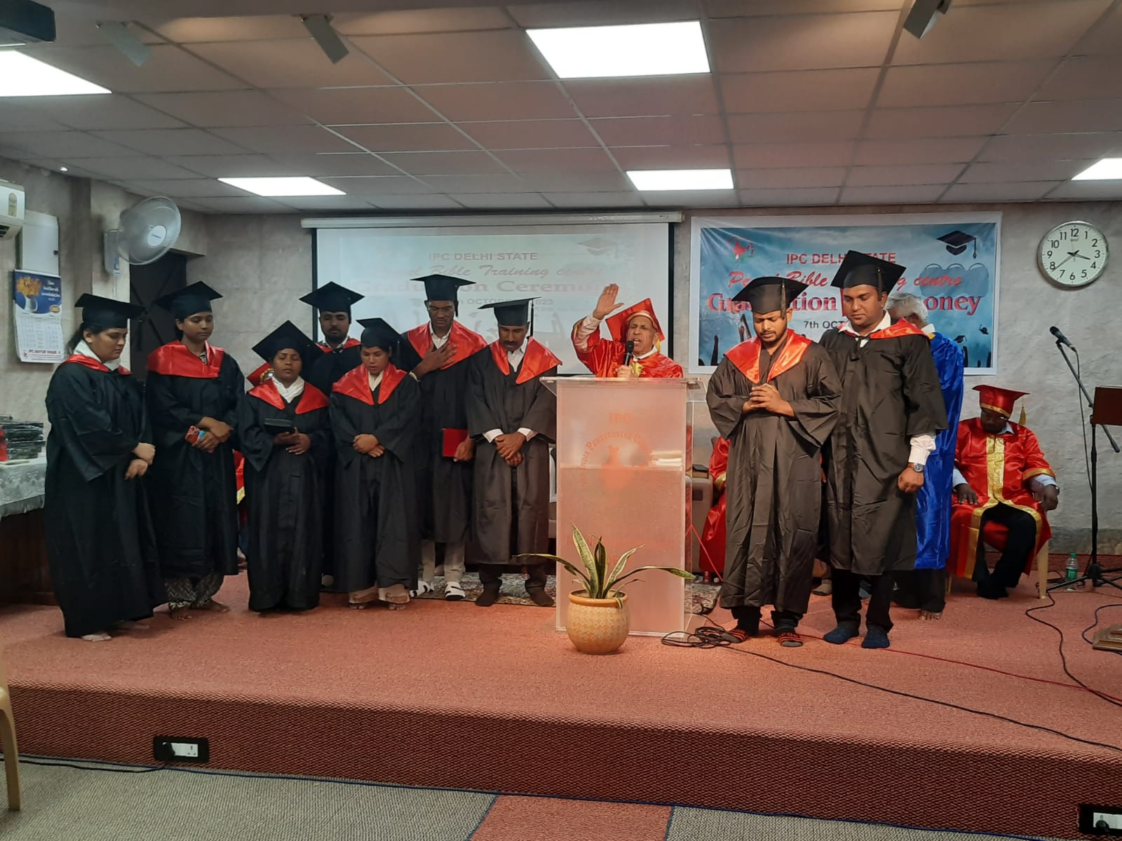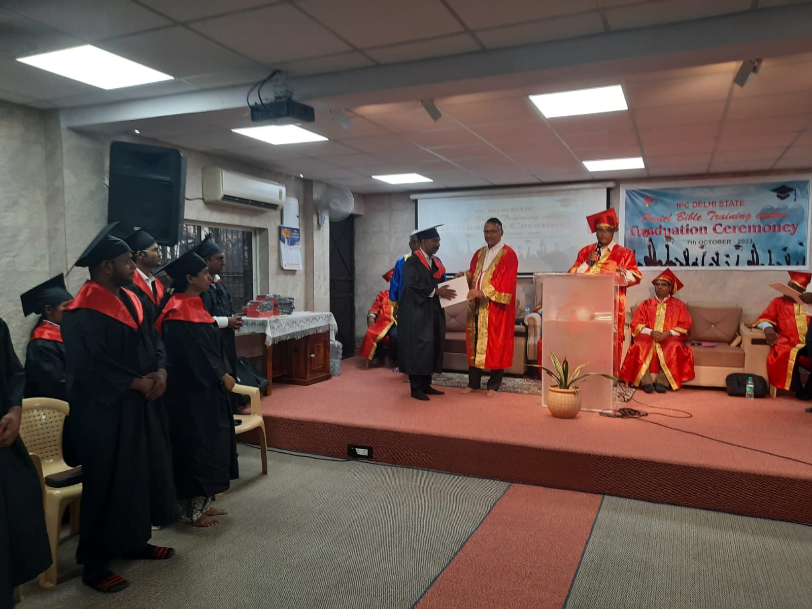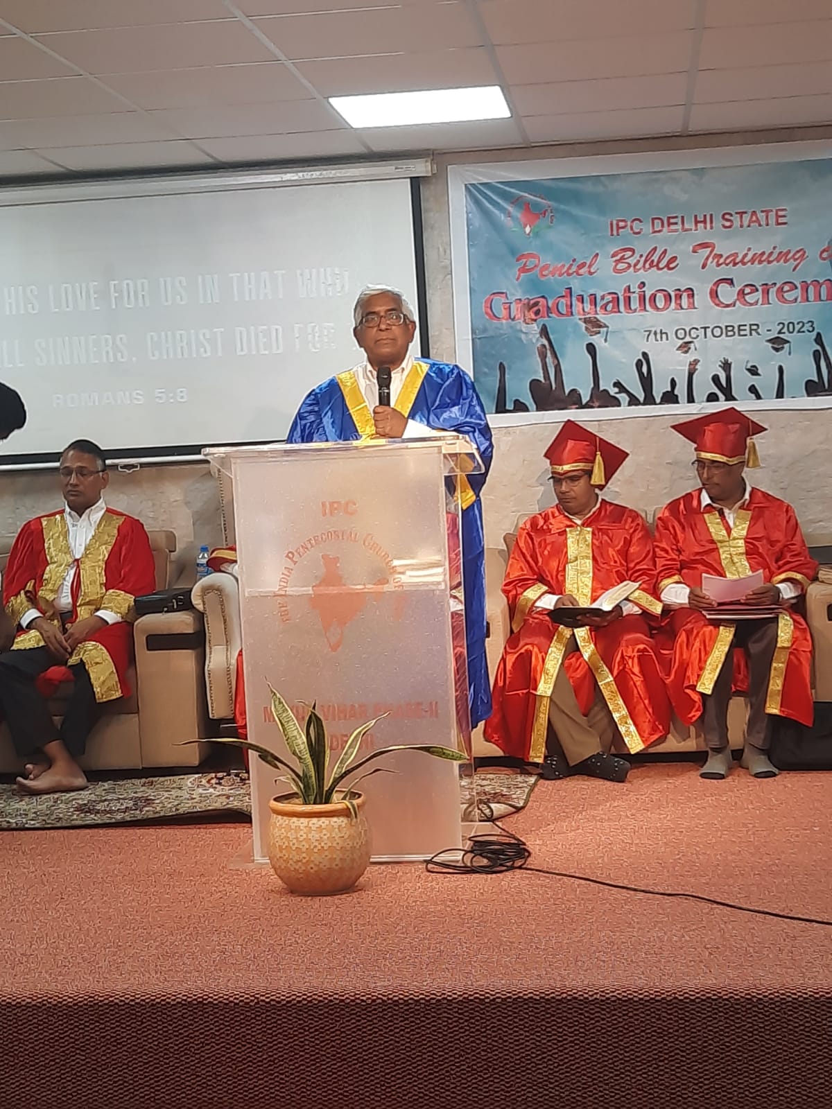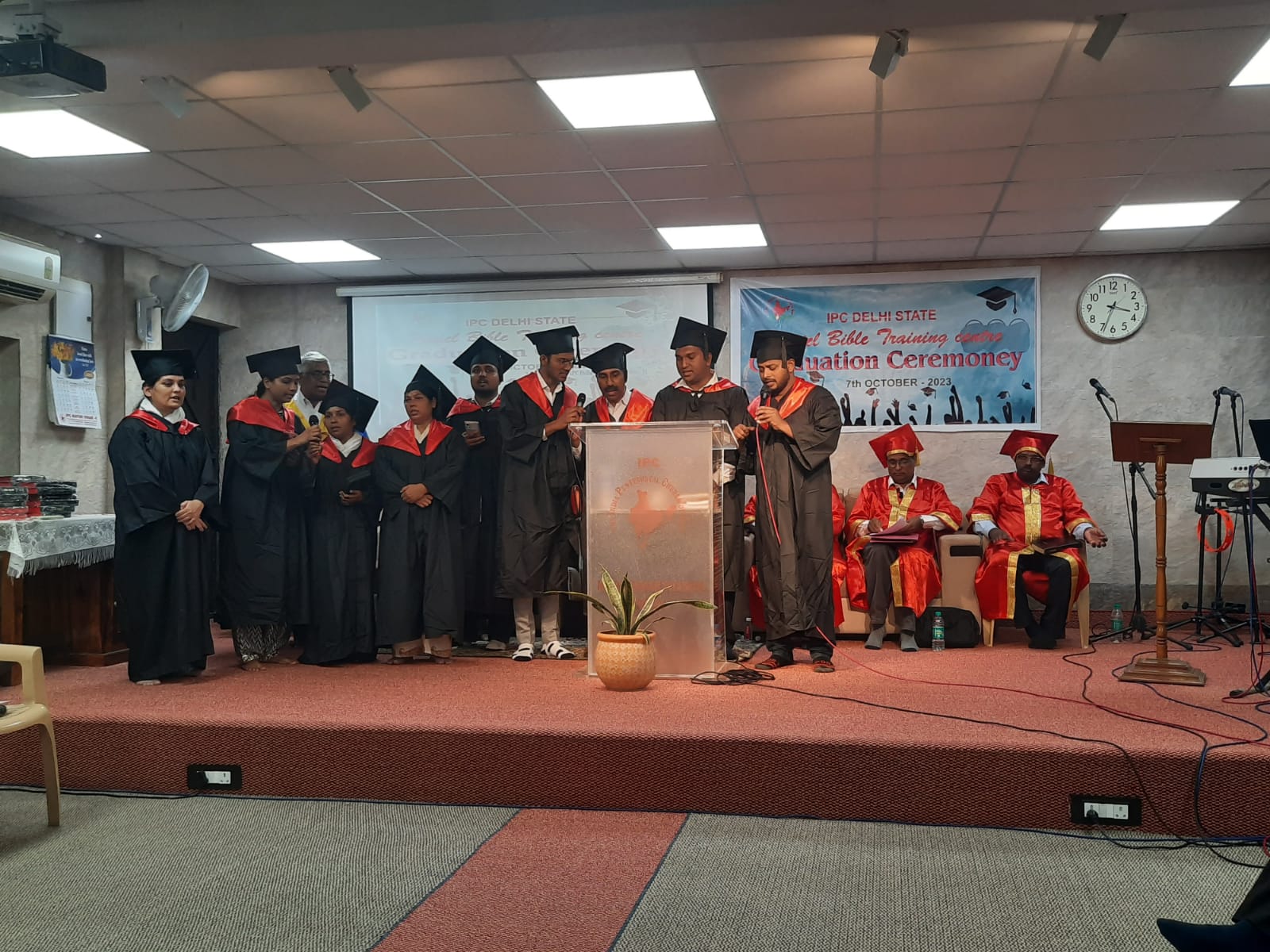 आईपीसी दिल्ली राज्य द्वारा संचालित वैदिक अध्ययन केंद्र पेनियल बाइबल ट्रेनिंग सेंटर के 2022-2023 बैच का स्नातक समारोह 7 अक्टूबर 2023 को दोपहर 2 बजे से आईपीसी मयूर विहार 2 चर्च में आयोजित किया गया। बाइबिल स्कूल निदेशक. पादरी. के। सी। थॉमस ने अध्यक्षता की. 10 विद्यार्थी स्नातक हुए। प्रदेश अध्यक्ष डाॅ. शाजी डेनियल ने स्नातक छात्रों को प्रमाण पत्र प्रदान किये। राज्य संरक्षक पादरी. के। जॉय ने स्नातक होने वाले छात्रों के लिए प्रार्थना की। पादरी सैम जॉर्ज और पादरी। के। वी। जोसेफ बाइबिल स्कूल के रजिस्ट्रार और प्रिंसिपल के रूप में सेवा करते है।