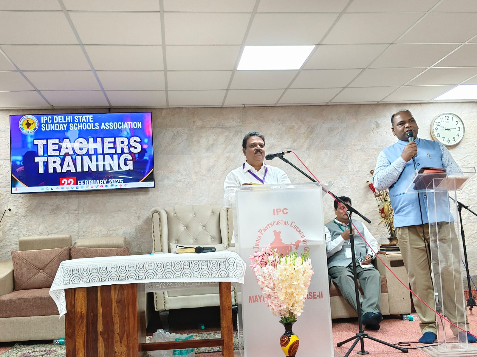 ഐപിസി ഡൽഹി സ്റ്റേറ്റ് സൺഡേ സ്കൂൾ അസോസിയേഷന്റെ ആഭിമുഖ്യത്തിൽ 2025 ഫെബ്രുവരി 22 ശനിയാഴ്ച രാവിലെ 10 മുതൽ വൈകിട്ട് 4 മണി വരെ സൺഡേ സ്കൂൾ അധ്യാപകർക്കുള്ള പ്രത്യേക ട്രെയിയിനിങ് ഐപിസി മയൂർ വിഹാർ ഫേസ് 2 സഭയിൽ വച്ച് നടത്തപ്പെട്ടു.